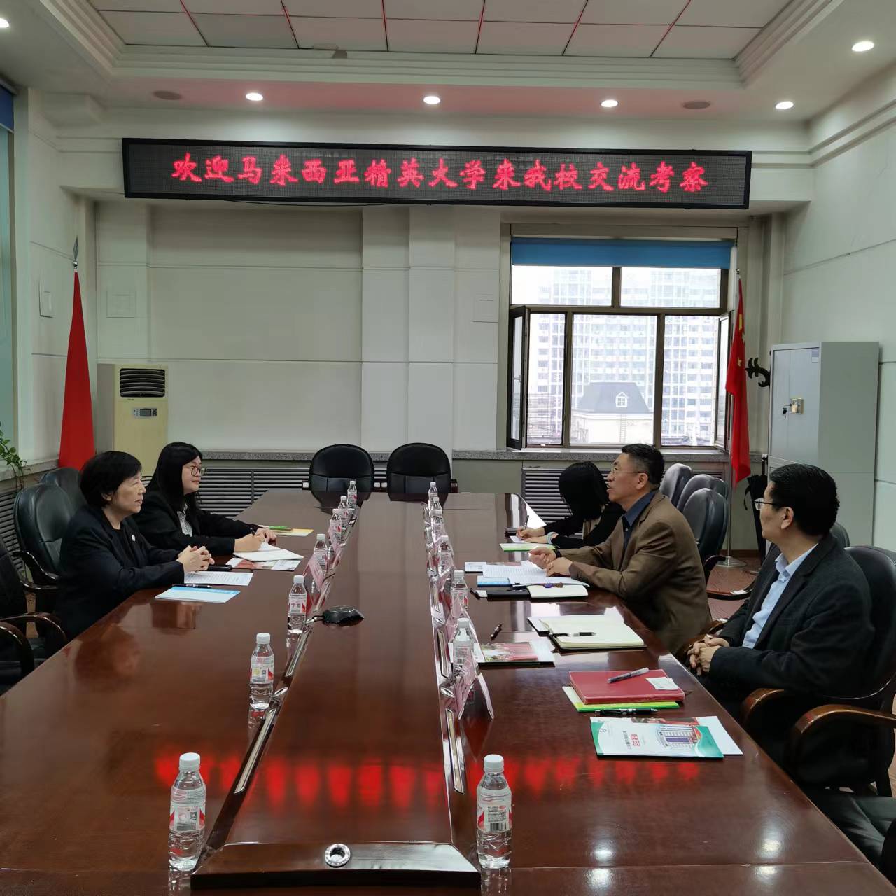 何志鹏代表学校对胡玉凤副校长一行表示热烈欢迎,并简要介绍学校基本情况和国际交流合作开展情况。他表示,学校将以此次交流为契机,在学生短期和长期交流、合作办学、项目合作、开展学术研讨等领域开展形式更多、范围更广的合作,适应双方教育国际化发展的需求。最后两校互赠有地域特色的小礼品,会议在融洽、和谐的氛围中落下帷幕。