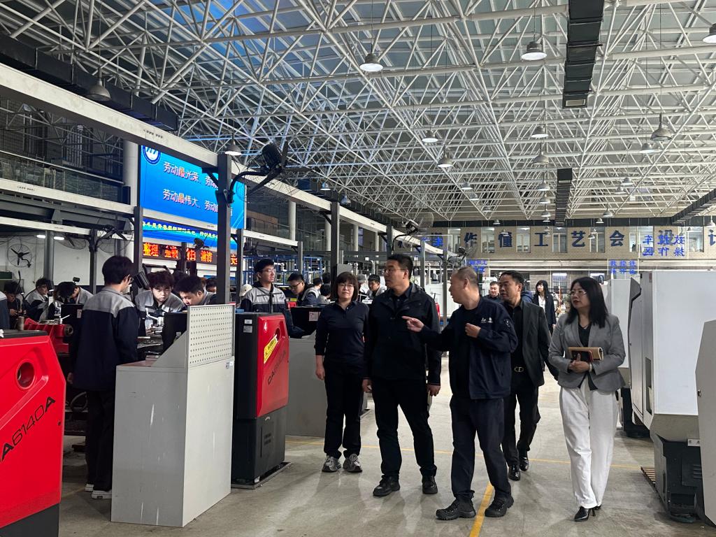 5月16日,沈阳飞机工业(集团)有限公司培训中心技能培训室主任张大为一行3人莅临伟德官网调研数字工匠学院建设情况,继续教育学院党总支书记赵彦生、院长王英侠、副院长刘广亮参加了调研,参观了学校实训场所:工业实训中心、多轴加工实训室、数字化检测实训室、工业机器人训练中心、虚拟仿真实训室等。