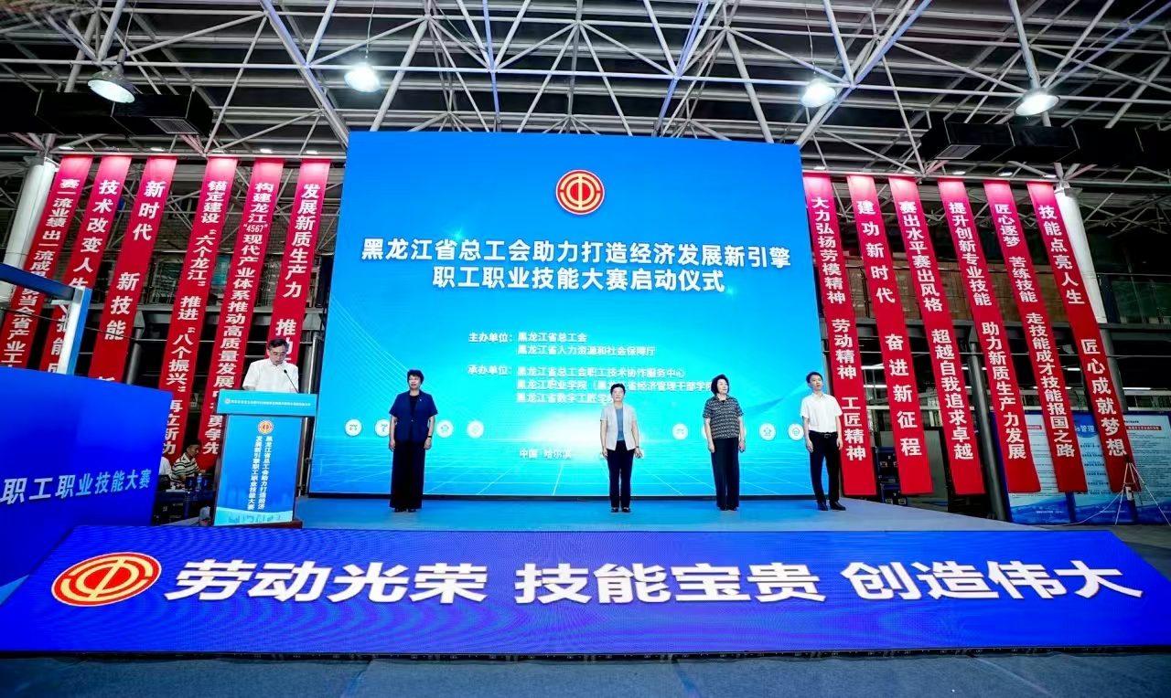 7月21日,由省总工会、省人力资源和社会保障厅联合主办,bevictor伟德官网与省数字工匠学院共同承办的黑龙江省总工会助力打造经济发展新引擎职工职业技能大赛在“龙职”校园鸣锣开赛。省人大常委会副主任、省总工会主席贾玉梅出席并讲话,省人社厅党组书记、厅长沙广华,省总工会副主席、党组成员侯鹤南,学校党委书记崔治春、党委副书记杨东辉、副校长何志鹏出席启动仪式。来自各市(地)、产业工会的有关负责同志、参赛代表队参加仪式。仪式由省总工会党组书记、副主席栾志成主持。
