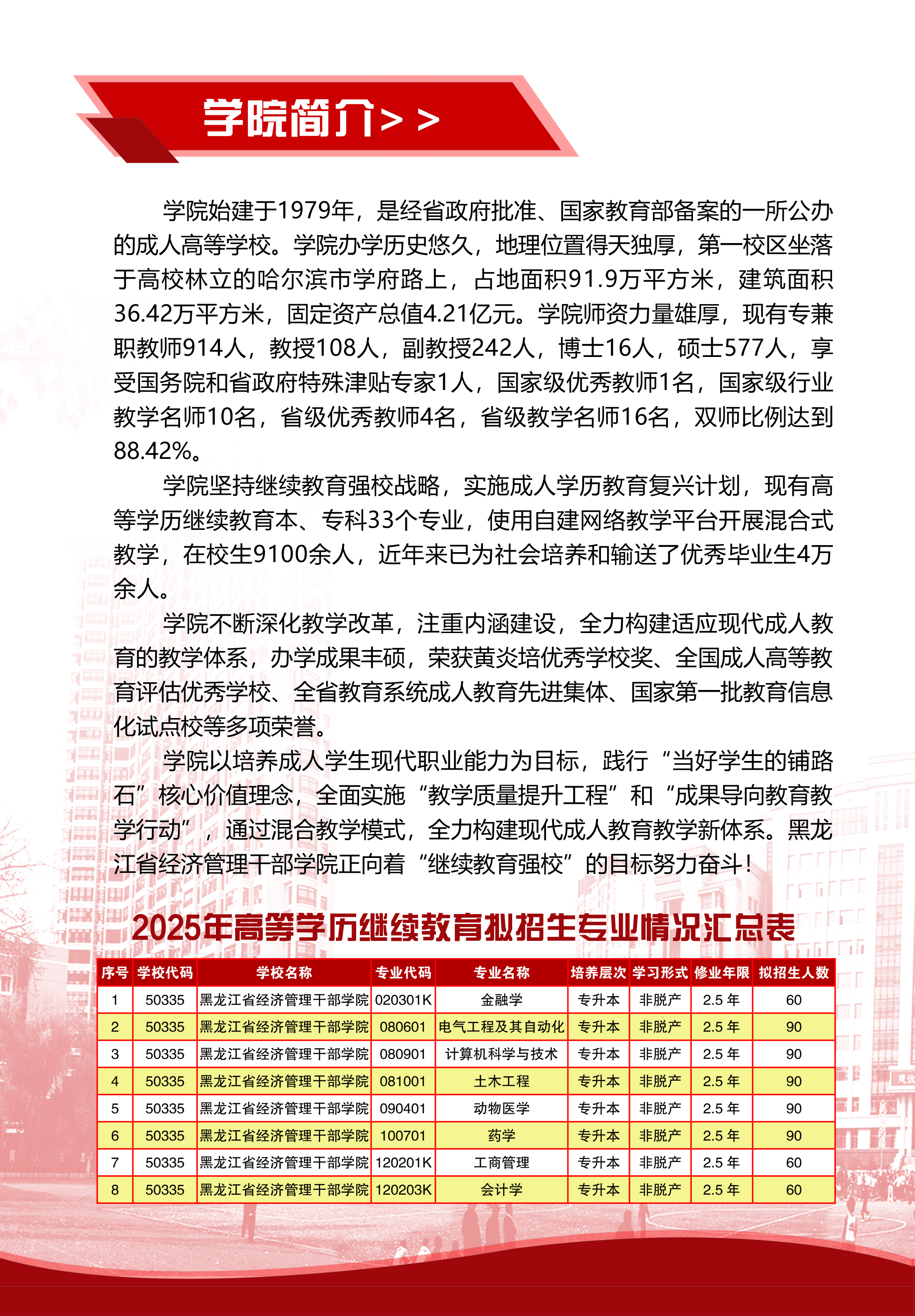 黑龙江省经济管理干部学院2025年成人学历教育本、专科开始招生