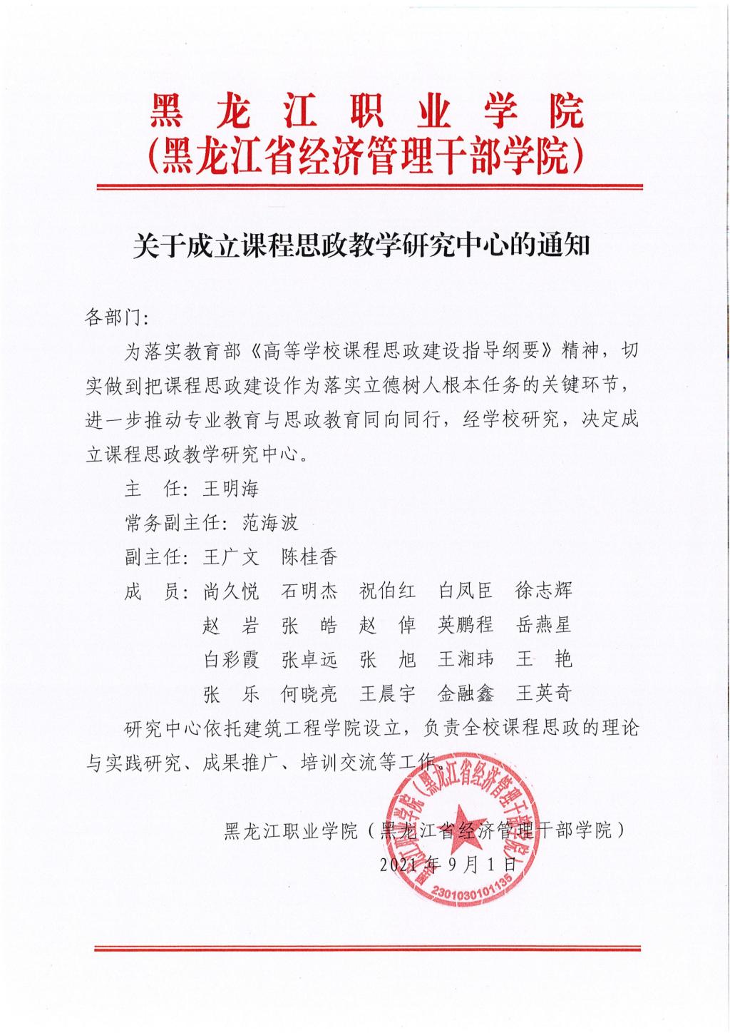 关于成立课程思政教学研究中心的通知