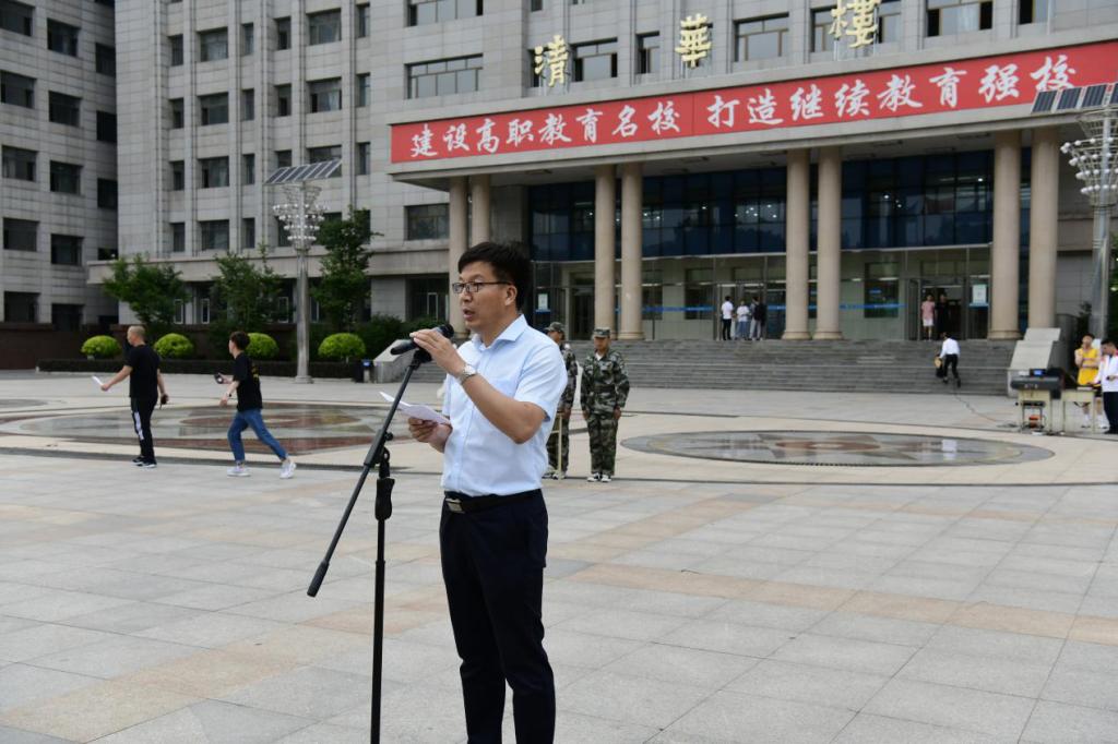 6月16日下午6时,学校举行2020-2021学年学生早军操总结表彰大会,学校党委副书记周家郁出席大会并讲话,出席本次大会的还有学工部班子成员、二级学院党支部书记、学管副院长、学管办主任、2020级辅导员及全体学生,会议由学工部部长石明杰主持。