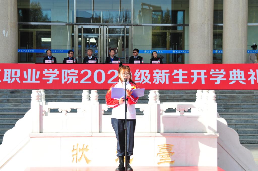 电子商务专业3班宫柏琳同学发言,她代表全体新生感谢老师们的关心和进入校园后感受到的温暖,表示作为新时代青年,立志要不断拼搏,在奋斗中成就自我,更好地谱写属于2020级龙职人的青春华章。