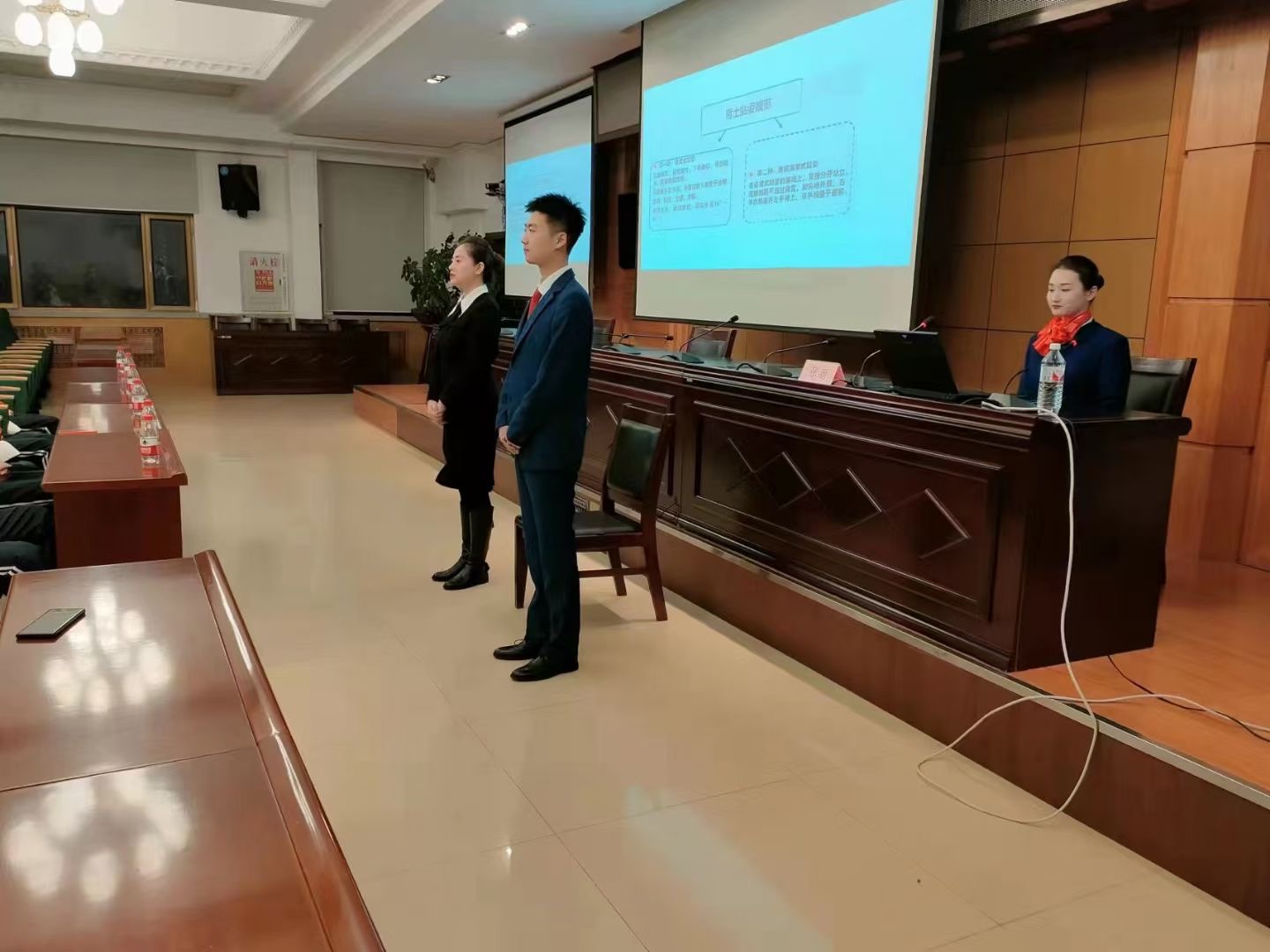 为进一步推进素质养成教育,增强学生自尊、自信、自立、自强的精神,着力培养学生懂礼仪、高素质的良好形象,营造和谐的校园氛围。11月23日-24日,学校开展了2021级新生文明礼貌礼仪培训活动,邀请旅游与人文艺术学院高级礼仪培训师张丽主讲,各二级学院选派学生骨干参与学习。培训分理论与形体实践两部分,运用理论讲授、情景模拟,角色扮演以及分组练习等培训方式,重点开展课堂礼仪、宿舍礼仪、食堂礼仪、电梯礼仪、图书馆礼仪及文明用语等礼仪规范。