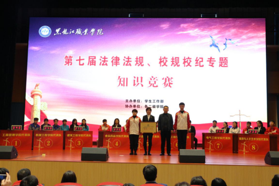 12月16日下午,第七届“法律法规、校规校纪”专题知识竞赛在一校区工匠楼礼堂成功举办。学校党委副书记周家郁,学工部班子,二级学院党总支书记、副书记、学管办主任、辅导员和600余名学生参加了此次活动。