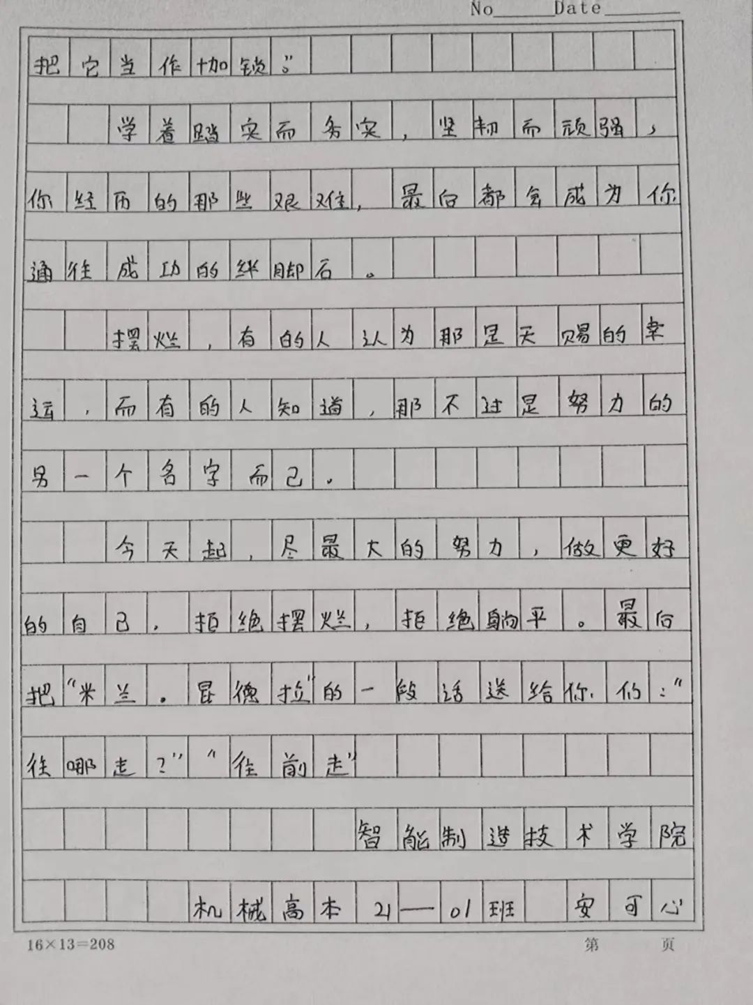为进一步加强伟德官网学生心理健康教育工作,积极引导学生在疫情期间关注心理健康,关爱自己心灵成长,正面激励学生成就自我,以成果导向理念为指导帮助每一名学生获得成功,智能制造技术学院开展“感恩、励志、诚信”主题活动。