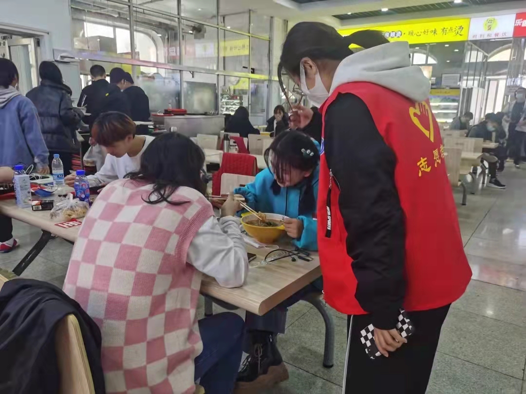活动开始,志愿者们准时到达各岗位,秉承勤劳肯干、认真负责的工作态度,文明引导广大同学自觉排好队,做到“不插队,不拥挤,不喧哗”,引导同学们在就餐后自觉将用完的餐具放到固定餐具回收处,并对身边的不文明行为进行劝导。