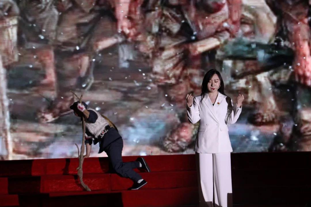 中间围绕诗朗诵情景剧进行表演。