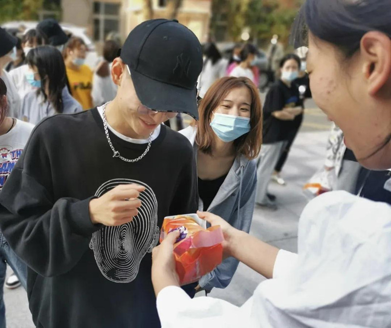 每逢佳节倍思亲,情深谊长盼相聚。中秋佳节即将来临,为了让来自四面八方的莘莘学子在祥和愉悦的节日氛围中欢度佳节,因疫情封校阶段感受到家的温暖。9月26号下午,龙职为每一位同学准备了中秋节月饼,旅游学院有序组织发放。月饼的传递的不仅是节日的气氛,更是将“家”的归属感带给了每一位龙职学子。    发放月饼现场工作安排有序,秩序井然,同学们满怀着喜悦的心情,早早就等候在了月饼发放地点。在场的辅导员老师和工作人员把这份饱含温情的节日礼品一一发放到学生手中,正在排队领取月饼的同学们脸上洋溢着感动与喜悦,每一声“谢谢”都浸满了幸福的味道,现场洋溢着浓浓的中秋节日氛围。