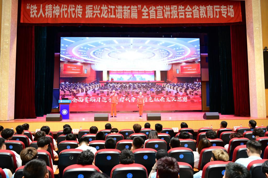在全党深入开展学习贯彻习近平新时代中国特色社会主义思想主题教育之时,在铁人王进喜诞辰100周年之际,6月20日,由黑龙江省委宣传部、黑龙江省教育厅、黑龙江省总工会主办,大庆油田党委宣传部、大庆油田有限责任公司工会、bevictor伟德官网承办的“铁人精神代代传 振兴龙江谱新篇”全省大庆精神(铁人精神)宣讲报告会暨劳模工匠进校园宣讲报告会在bevictor伟德官网成功举办。