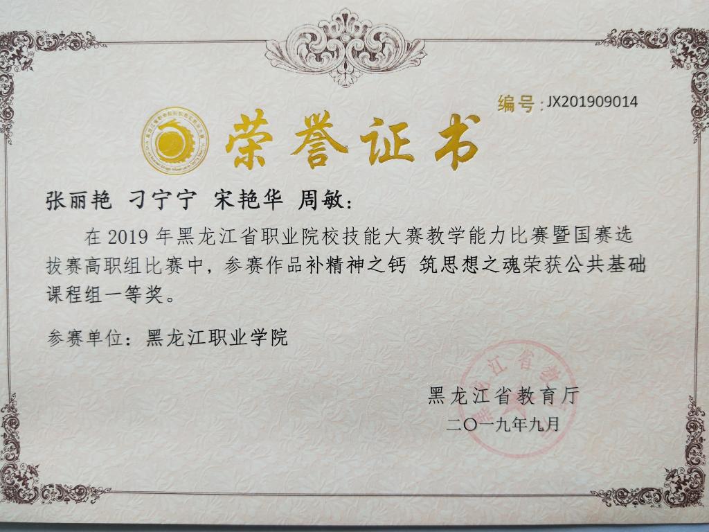 在全省高校就业指导教师教学大赛中获二等奖两项;在全省职业院校信息化教学大赛中获公共基础组一等奖一项,二等奖一项。