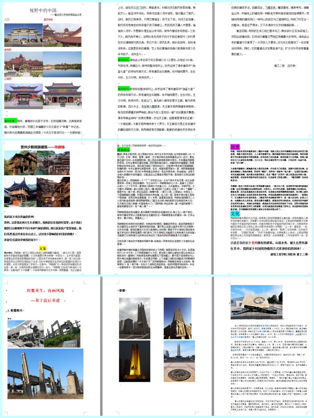 在本次会议中,主要对09月25日会议上布置的“视野里的中国”的活动进行探讨并听取各位老师的阶段性成果汇报及展示学生作品。首先,各位老师对布置活动过程和完成情况及效果进行逐一汇报,在布置活动过程中主要要求学生选取看过或阅览过的国内经典建筑中最喜欢的中国建筑,展示照片并对建筑背后的故事、功能、设计、结构和节能等方面进行阐述。学生非常踊跃积极的把心目中的中国建筑通过作品的形式展示出来。老师也从各位同学提交的作品中了解了同学们心中的中国建筑以及对建筑物的喜好方向。接下来,各位老师展示所收集的学生作品。
