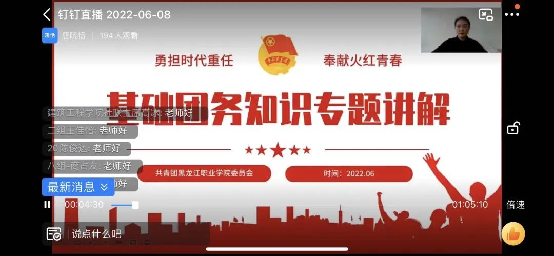 为深入学习贯彻习近平新时代中国特色社会主义思想,进一步推动“青年马克思主义者培养工程”工作深入开展,根据团中央《“青年马克思主义者培养工程"实施纲要》精神,校团委于6月6日至6月12日举办了第十六期“青年马克思主义者培养工程”暨大学生骨干培训班。6月6日,培训班开班式在钉钉线上平台举行,校团委书记邹春雷,二校区团委负责人梁立,校团委组宣办主任唐晓恬,校团委干事魏然、马雨薇、马天翔、常通、马莉,2019级校团委兼学生副书记李君鹏、张雪岩、徐琳,2020级校团委兼学生副书记关成、常雨欣、樊泽宇,第十六期“青马工程”暨大学生骨干培训班全体学员参加开班式,拉开本期培训班的序幕。