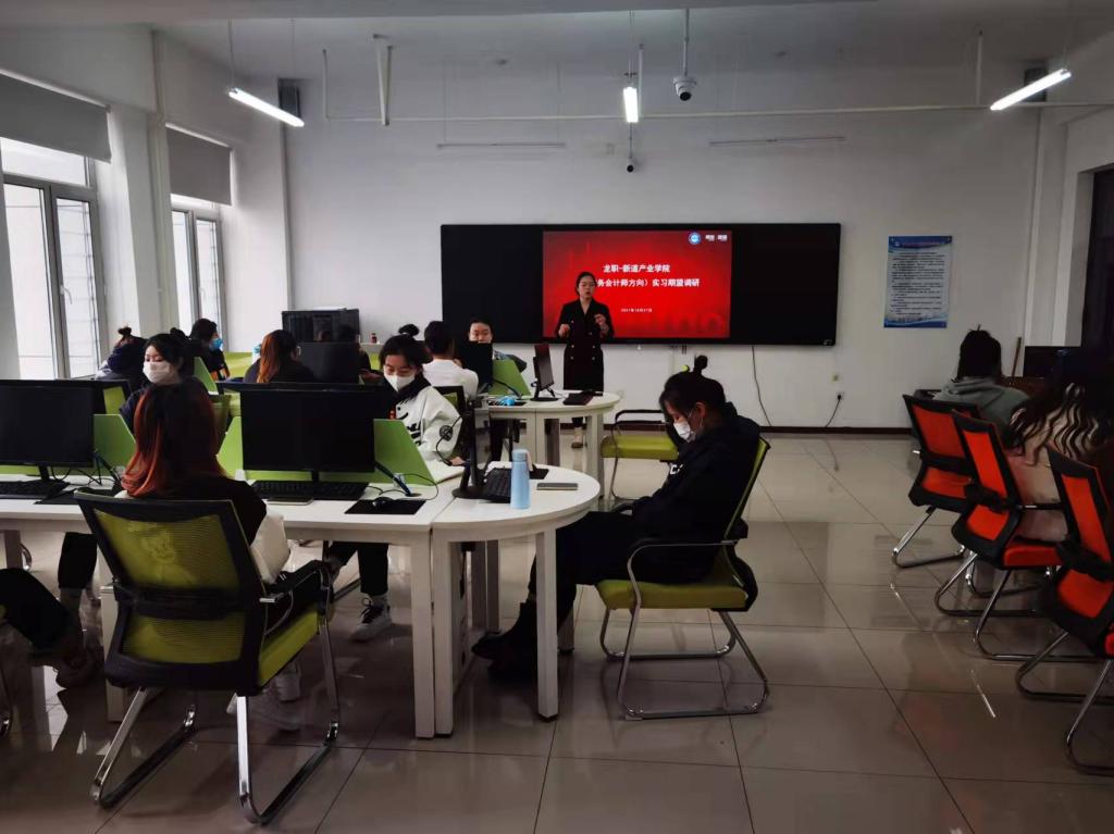 2019级会计信息管理专业为新道&龙职产业学院共建班,新道科技黑龙江分公司市场部总监吴雪凌表示,可在全国范围内为学生推荐财务相关实习岗位工作,此次调研为摸底调查,后续会继续为学生举办简历指导等就业相关专题讲座。