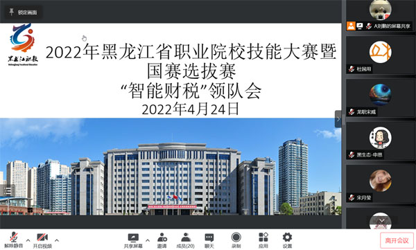 4月25日,由黑龙江省教育厅主办、中联集团教育科技有限公司协办、我院承办的黑龙江省职业院校技能大赛暨国赛选拔赛(高职组)“智能财税”赛项顺利拉开帷幕。赛项采用线上比赛方式进行,全省共有16所院校、64名选手参加比赛。