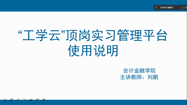 接着,基础教研室主任刘鹏从实习准备、日常实习、实习总结、成绩评定四个方面讲解了工学云顶岗实习管理平台的操作程序和操作方法;财务管理教研室主任杨鑫慧围绕实习组织、实习管理、实习考核和实习保障等方面说明了顶岗实习的具体管理规定,并讲解了岗位实习三方协议、岗位实习法定监护人知情同意书、自主实习申请表等相关实习文件的填写要求。