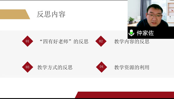 在课程教学反思活动中,我院遴选了5位教师进行了经验分享。