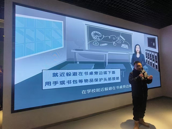 在沉浸式学习环节,三维全息投影还原了1976年唐山大地震的破坏场景。地面模拟震动装置启动时,参训人员按照"伏地、遮挡、抓牢"要诀规范避险。"震感等级每提升1度,逃生时间就缩短30%"的专业讲解,让抽象理论化为具象认知。