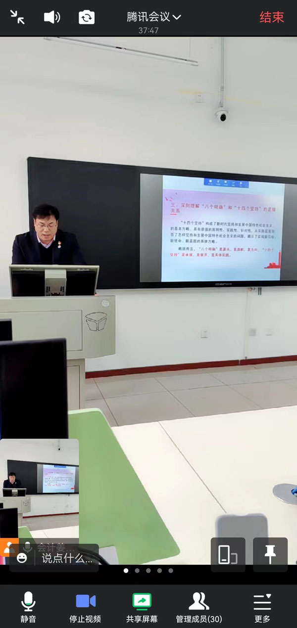 为深入学习领会习近平新时代中国特色社会主义思想,引领带动会计金融学院全体党员深化主题教育理论学习,4月28日,会计金融学院党总支书记张振和以《深刻认识“八个明确”和“十四个坚持”的科学内涵》为题,为学院全体党员讲授了一节生动的专题党课。