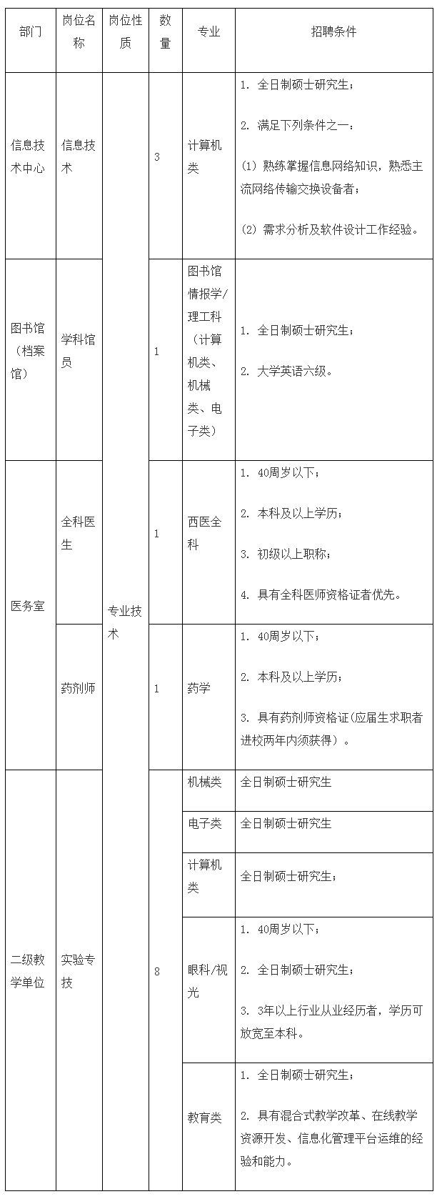 医师、检验、药剂人员需本科及以上,护理、医技人员需大专及以上,具体岗位要求详见附表。