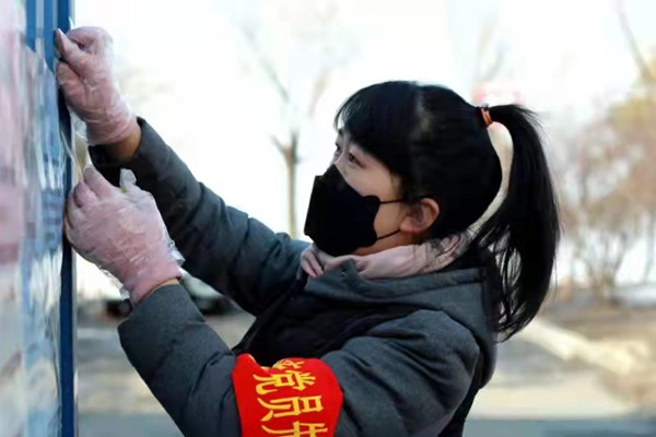2020年1月26日(大年初二),新冠疫情全面爆发,接到领导的紧急通知,她二话不说,立刻把年幼的孩子送到父母家,到岗听候指示。作为一名共产党员,作为一名基层公务员,她深知,这是国家危难时刻,党和国家需要她,需要她恪尽职守,打一场没有硝烟的战争。她克服科室人少,没有男同志的困难,既当将又当兵,巾帼不让须眉,为办事处的后勤工作提供保障。所有的防疫物资都是她亲自清点,搬运,最后发给各社区。搬运口罩、一次性手套,酒精等各类防疫物资约560余件。新冠初期,所有的饭店都暂时停业,全街上下50多人全天15、6个小时都在岗值守,一天两餐的问题怎么解决,买不到盒饭就自己做。冲进菜市场为大家采购新鲜的食材,默默地用实际行动诠释着一名普通共产党员的忠诚与担当。