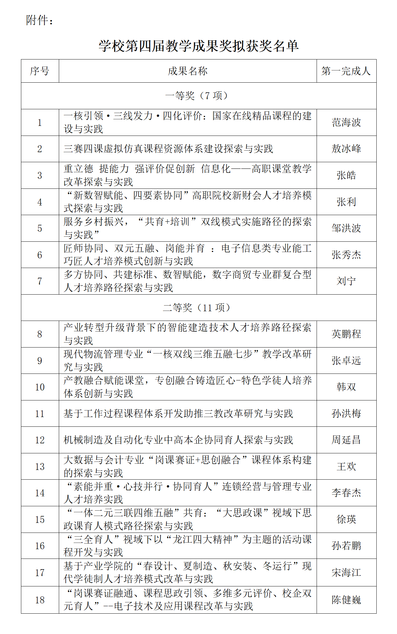 附件:学校第四届教学成果奖拟获奖名单