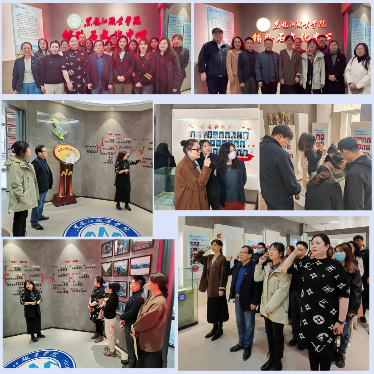 3月27日旅游人文学院党总支教师第一党支部与教师第二党支部携手,共同举办了一场别开生面的主题党日活动。此次活动的亮点之一是参观学校铺路石文化中心,宣传部安排王湘玮老师为教师们提供了详尽而生动的讲解服务。