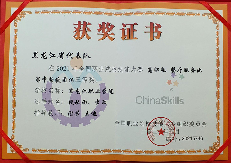 6月21日,全国职业院校技能大赛高职组“餐厅服务”赛项在山东省青岛市举办。伟德官网酒店管理专业参赛学生段秋雨、李政凭借扎实的理论功底、娴熟的专业技能、精准的操作规范和良好的临场发挥,在指导教师谢芳和王迪带领下,荣获本届大赛团体三等奖,赢得现场专家评委一致认可与好评。