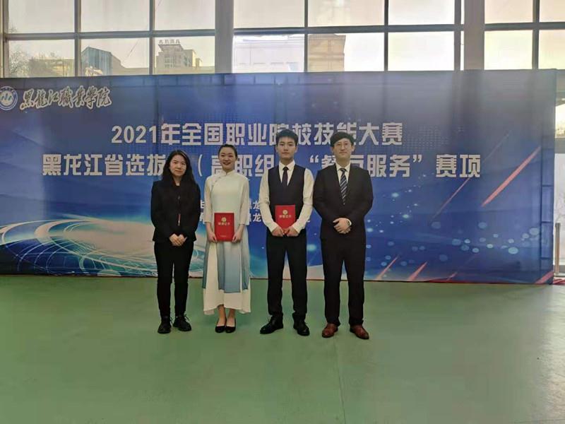 4月24日,由黑龙江省教育厅主办,伟德官网承办的2021年全国职业院校技能大赛“餐厅服务”赛项黑龙江省选拔赛(高职组)圆满落下帷幕。伟德官网参赛代表队在酒店管理专业教师谢芳、王迪带领下,参赛学生段秋雨、李政两位同学沉着应战,表现优异,凭借扎实的理论基础与高超的专业技能水平,荣获大赛一等奖,直接晋级国赛。