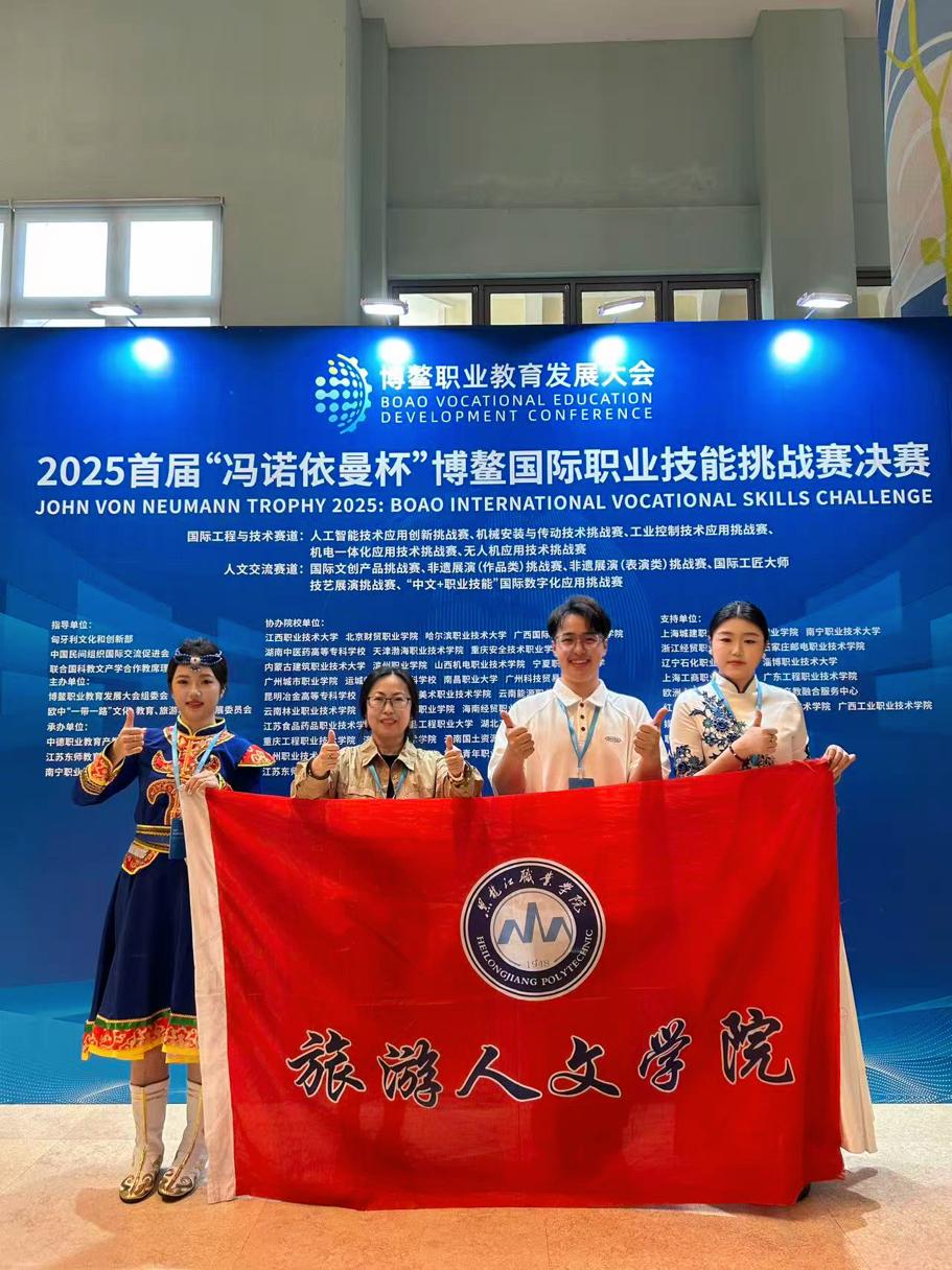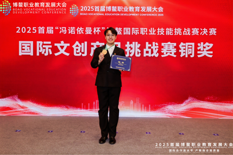 12月8日,2025年首届“冯诺依曼杯”博鳌国际职业技能挑战赛国际人文交流赛道总决赛在海南博鳌亚洲论坛国际会议中心圆满落幕。本届大赛由匈牙利文化和创新部、中国民间组织国际交流促进会、联合国科教文产学合作教席理事会指导,博鳌职业教育发展大会组委会、欧中“一带一路”文化教育旅游和经贸发展委员会主办,赛事吸引了来自二十余个国家400余所中外院校近200多支参赛队伍同台竞技,我院会展策划与管理专业师生凭借扎实专业能力与创新思维在国际文创产品赛项中斩获佳绩!