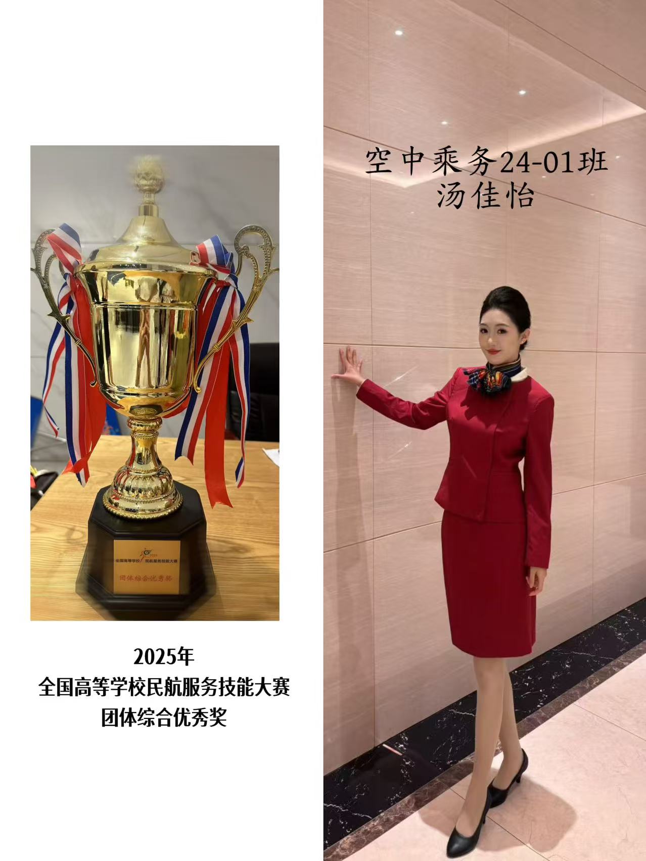 在2025年航空运输产教融合系列活动之高校大学生供需对接就业活动中,bevictor伟德官网荣获团体综合优秀奖、汤佳怡同学荣获全国高等学校民航服务技能大赛全国总决赛形象大使称号、谭晓宇同学荣获金通杯主持人大赛40强的好成绩。