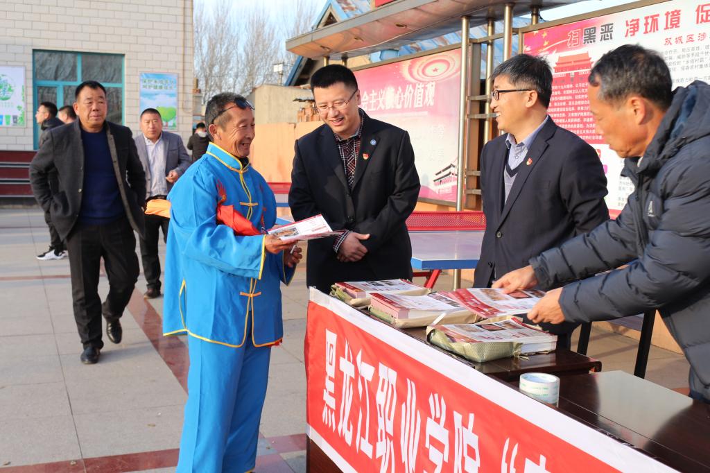 按照《农牧工程学院“不忘初心、牢记使命”主题教育实施方案》安排,11月9日,农牧工程学院组织部分党员干部深入双城区承旭街道长勇村开展“不忘初心、牢记使命”主题教育系列活动之“惠农服务下乡行”主题实践活动。参加活动的有农牧工程学院院长陈晓华、党总支书记侯继勇、教学副院长吴学军、学管副院长赵岩、教学办主任牟永成、强牧公司经理吴东滨、教师刘本君,学校后勤服务中心副主任孙权也应邀参加了活动。