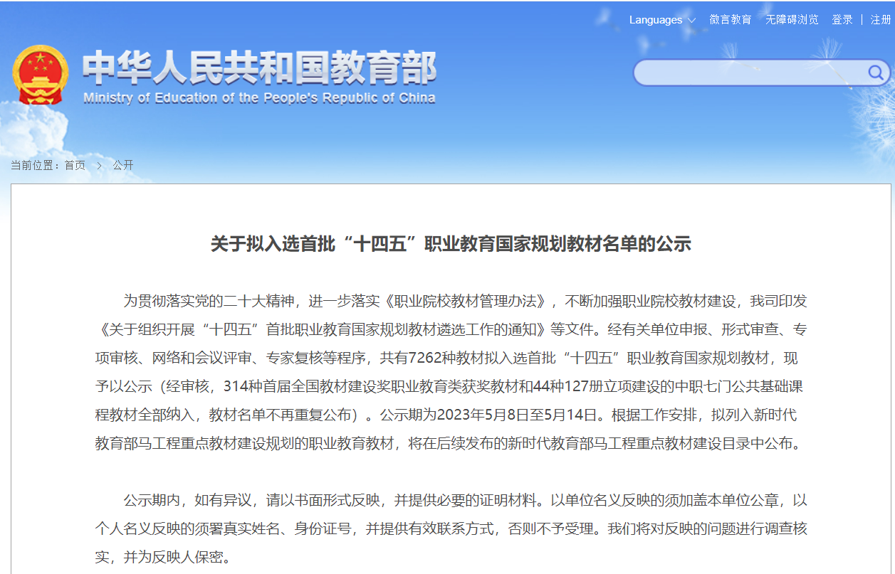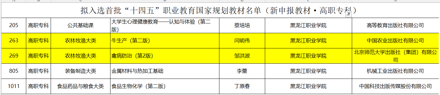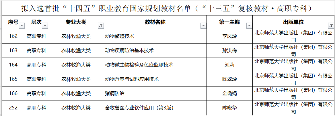 2023年5月8日,教育部职业教育与成人教育司印发《关于拟入选首批“十四五”职业教育国家规划教材名单的公示》,农牧工程学院主持并编写的八部教材成功入选首批“十四五”职业教育国家规划教材。其中新申报教材两部,“十三五”复核教材六部。