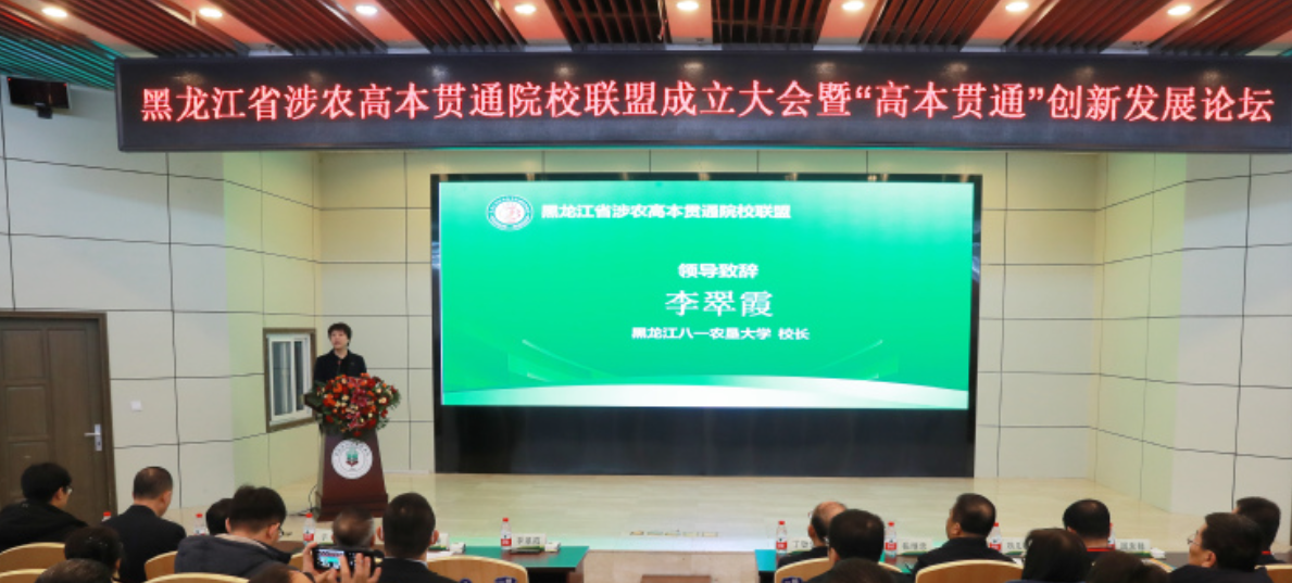 ▲黑龙江八一农垦大学校长李翠霞在联盟成立大会上致辞
