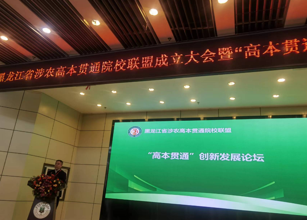 12月14日,黑龙江八一农垦大学与省内7所高(中)职院校共同发起成立的黑龙江省涉农高本贯通联盟成立大会暨“高本贯通”创新发展论坛在黑龙江八一农垦大学举行。八一农垦大学校领导和7所高(中)职院校代表出席大会。伟德官网做为发起单位之一,由党委副书记周家郁、教务处长王广文、农牧工程学院院长邹洪波代表学校参加了会议。黑龙江省教育厅二级巡视员丁哲学到会并讲话。联盟成立会议由八一农垦大学副校长崔卫国主持。