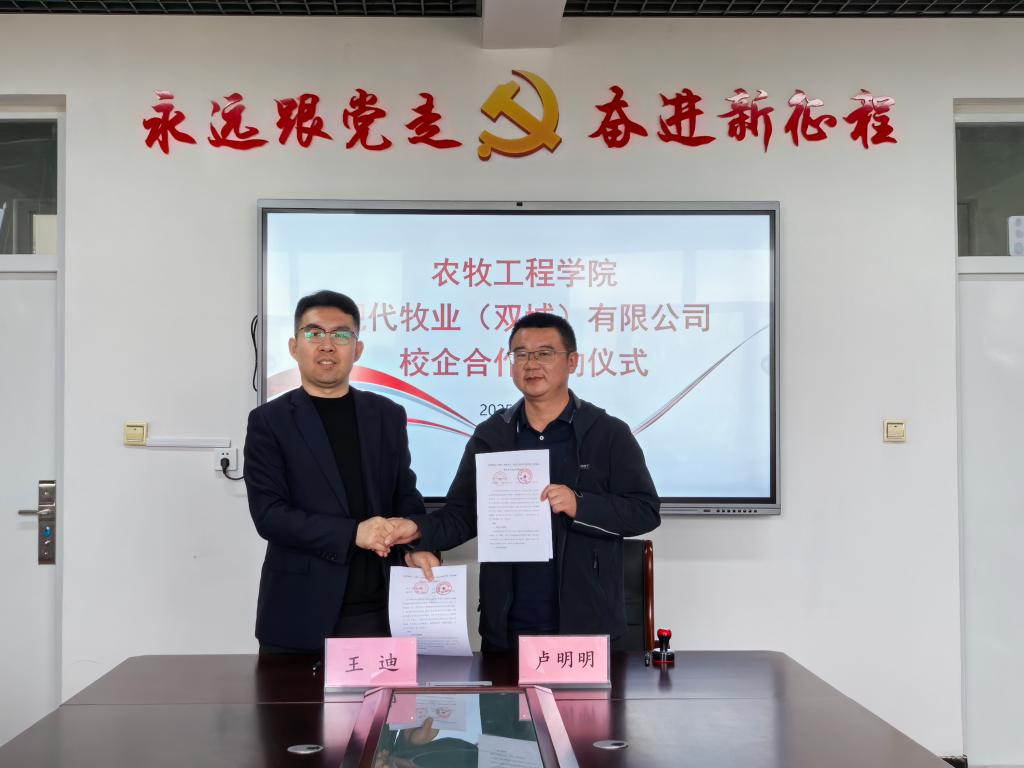 5月9日,农牧工程学院与现代牧业(双城)有限公司签订冠名班合作协议,并举行校企合作签约仪式。学院领导、企业代表及畜牧兽医专业23级学生共同参与,标志着校企协同育人迈入新阶段。