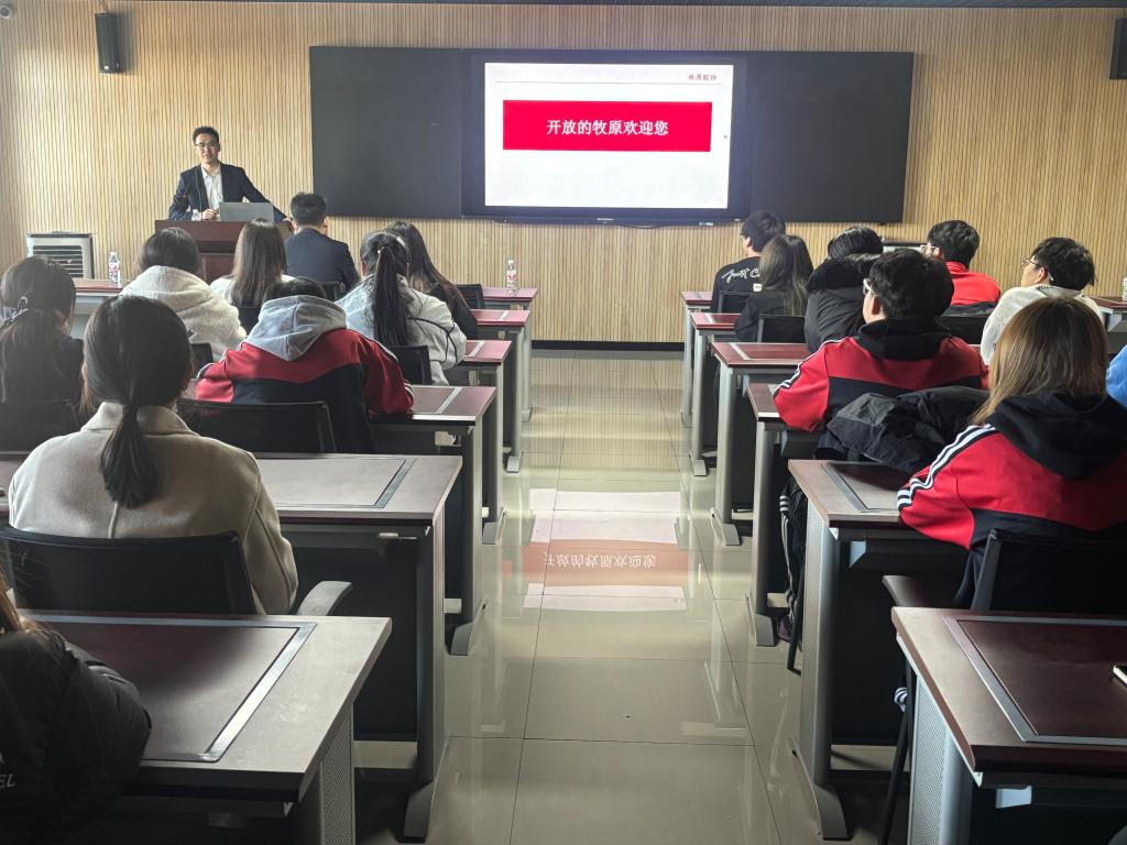 随后,牧原集团代表详细介绍了企业发展概况、行业前景及“牧原班”培养方案,从岗位需求到职业发展路径等方面进行全面解读,让在场学生对未来学习与就业方向有了清晰认知。