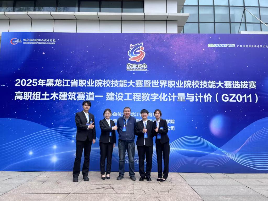 5月17日,由黑龙江省教育厅主办的2025年黑龙江省职业院校技能大赛暨世界职业院校技能大赛选拔赛在哈尔滨铁道职业技术学院举行,在“GZ011建筑工程数字化计量与计价”赛项中,伟德官网建筑工程学院教师郝建涛、鲁春辉指导的徐卓、李志鸿、韩雪、赵秦焱四名学生组成的代表队荣获二等奖。