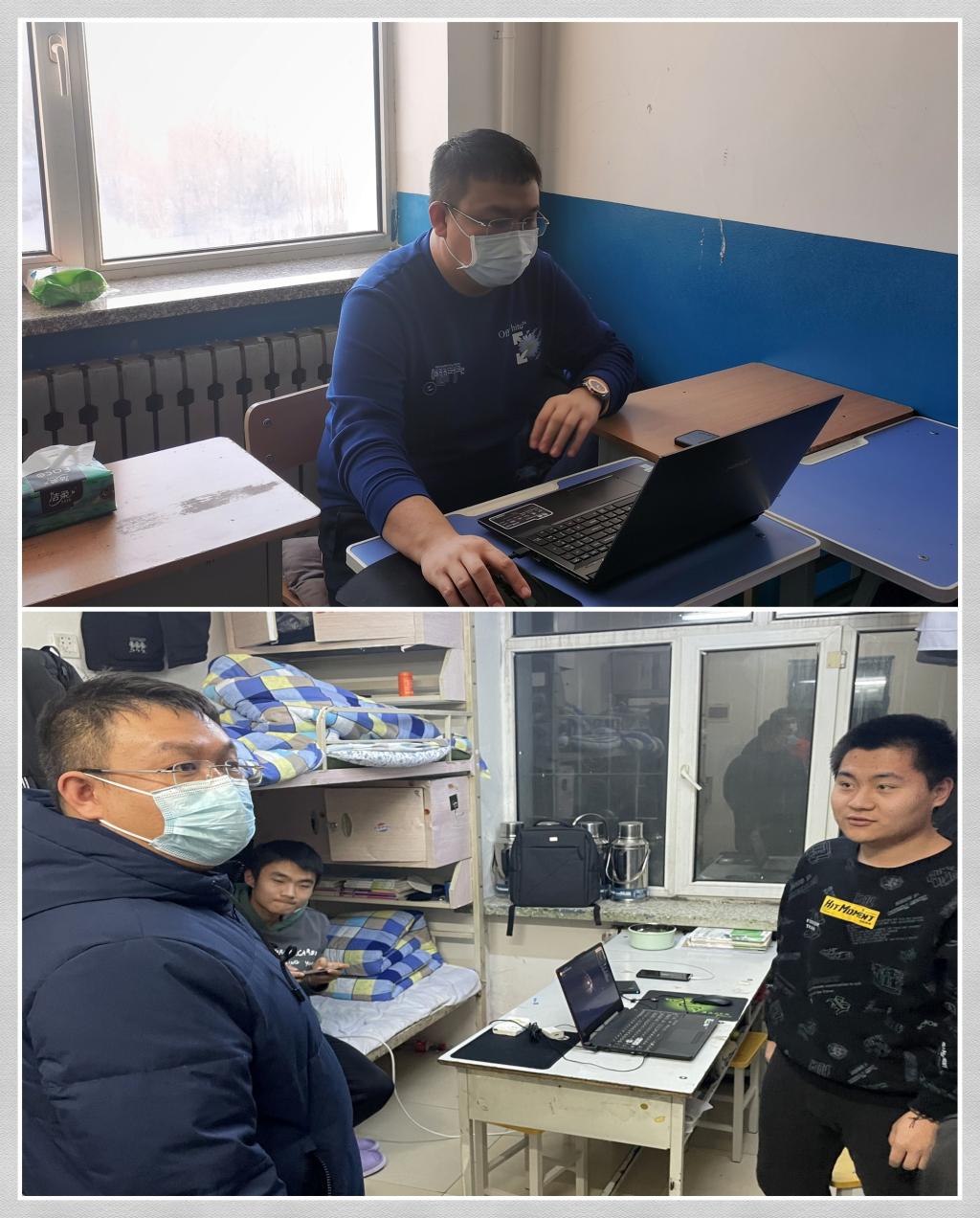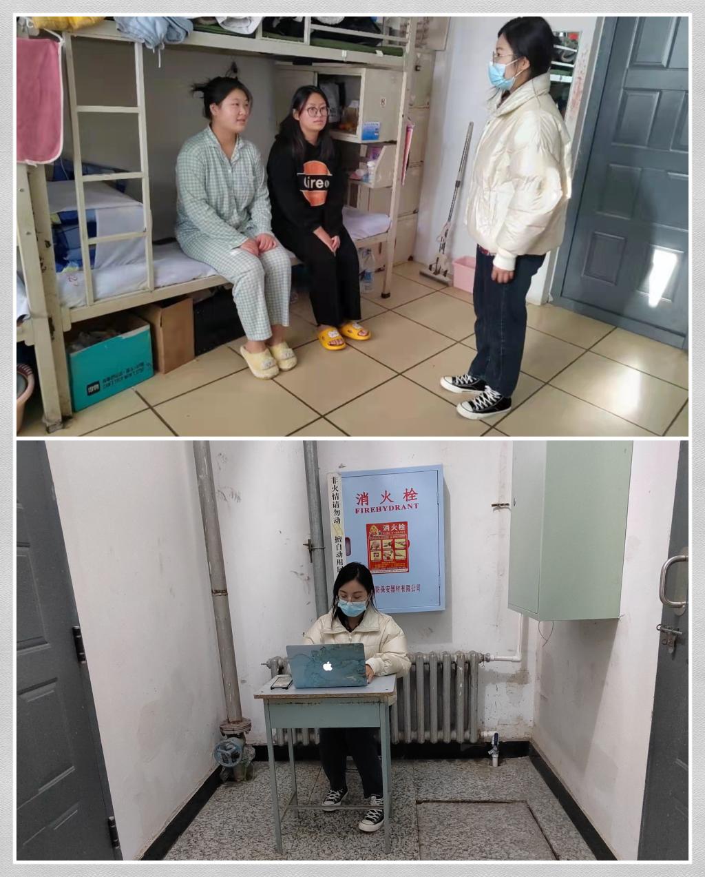白天工作中,辅导员们对于学生的大事小情积极解决,小到学生需要生活用品,大到学生发病需要照看。对于前来问询的学生,辅导员们耐心地解答学生们的思想困惑,如哈尔滨最新的疫情政策和公告该如果解读等。辅导员们一遍遍地深入寝室,关心学生们的生活状况,劝导学生们期末时间段要认真复习,考出好成绩。同时对寝室的卫生状况也做出了严格要求,冬季正是急性病的高发期,寝室内务干净卫生可有效减少疾病发生的可能性。面对平日里寡言的学生、调皮的学生,辅导员们倾入了更多关注,在一次次交谈中走进了学生内心深处。夜间,辅导员们在寝室值班住宿,保证了学生在夜里如有突发状况能够第一时间介入。