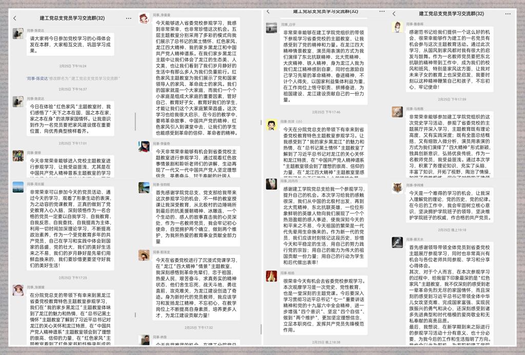 本次的参观活动使大家受益匪浅,参观结束后,全体党员在“党员学习交流群”内展开了热烈的交流发言,大家积极分享了自己的心得体会。