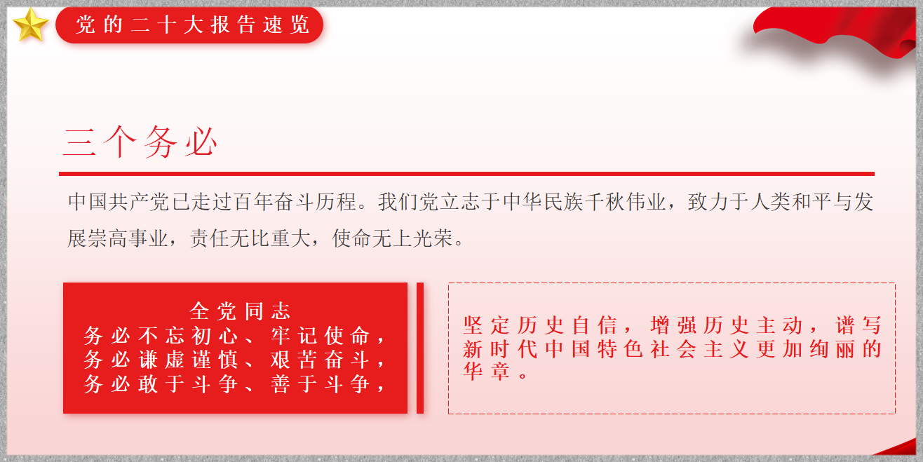 党课上,支部书记景铎紧扣习近平总书记在党的二十大报告原文,从三个务必、十年来三件大事、中国共产党的中心任务、为民造福是立党为公执政为民的本质要求、国家安全是民族复兴的根基等多个方面,带领支部全体党员对党的二十大报告原文进行了深入解析。