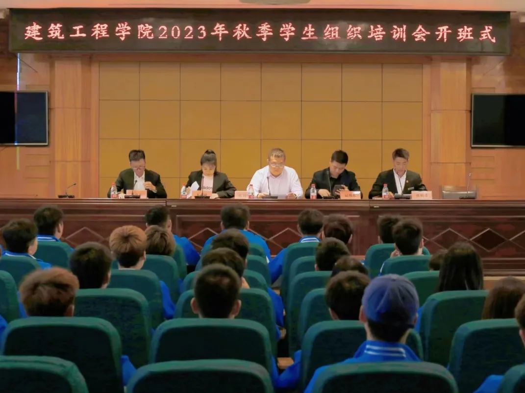 为进一步加强学生干部队伍建设,提升学生组织工作人员的思想认识和工作能力,促进学院学生工作全面发展,努力打造一支作风硬、能力强、素质高的学生队伍。建筑工程学院团总支于2023年9月27日晚17时,在清华楼经济报告厅举办秋季学生组织工作人员培训班开班式,建筑工程学院团总支书记张钧铭,2023级辅导员姜兆欣,赵维政、李瑞彬及179名学生干部参加本次开班式,开班式由建筑工程学院学生会主席张树浩主持。