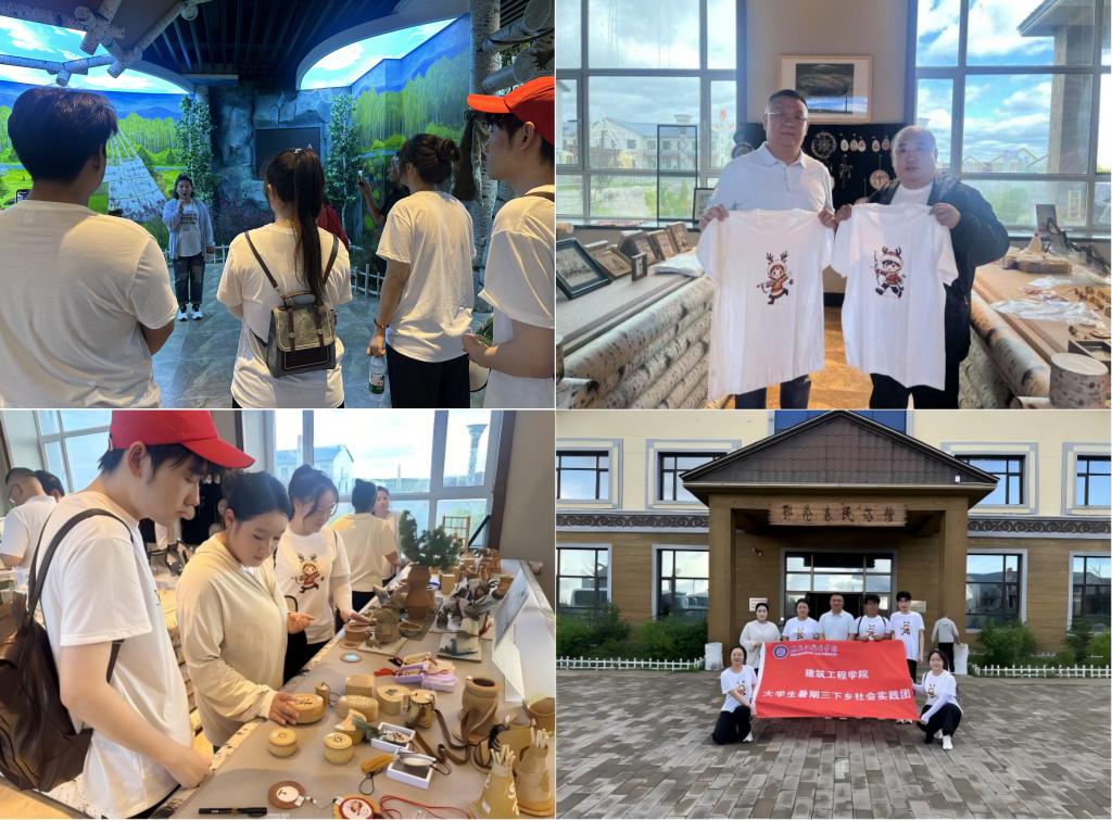 在鄂伦春民俗馆内,承载着鄂伦春族历史记忆的展品,生动展现了当地独特的民俗文化。从狩猎工具到传统服饰,从生活器皿到民间手工艺品,队员们通过近距离观察和聆听讲解,深刻感受到鄂伦春族人民在长期生产生活中形成的智慧与创造力,也认识到保护和传承民族文化对于维护中华民族文化多样性的重要意义。同时实践团把印有鄂伦春族卡通人物的四件原创体恤赠予贵馆,助力鄂乡文旅产品创新和非遗文化传承。