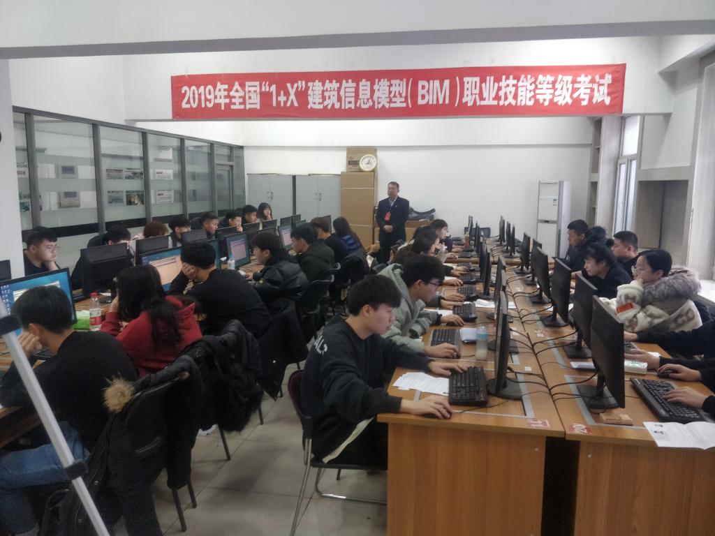 为提升职业教育质量和学生就业能力,教育部部署启动“学历证书+若干职业技能等级证书”(简称1+X证书)制度试点工作。bevictor伟德官网成为全国首批“1+X”证书制度试点和“1+X”建筑信息模型(BIM)职业技能等级证书首次全国考点院校。按照首次全国考点考前动员会会议精神,在校党委的高度重视下,建筑工程学院于12月21日成功开展了第一期BIM等级考试。考试在建工学院BIM应用中心实训室举行,共74名学生参加了此次考试。副校长王明海亲临现场指导工作,学院院长范海波、副院长张皓在考试过程中全程巡视。