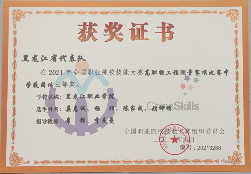 由教育部主办,昆明冶金高等专业学校承办的2021年全国职业院校技能大赛高职组“工程测量”赛项在云南省昆明市成功举办。建筑工程学院景铎、李曼曼两位教师带领的19级建筑工程技术专业学生姜惠诚、杨朋、陈家成、刘坤明经过两天的激烈比拼,荣获了团体三等奖的优异成绩。