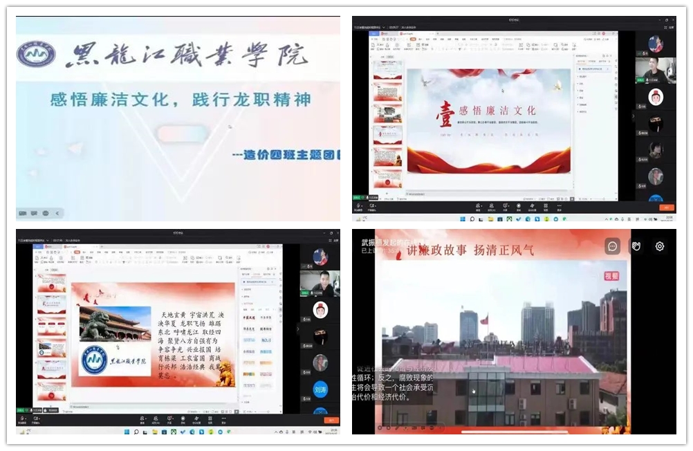 为进一步推动我院廉洁文化建设,培养我院学生养成“知廉、爱廉、行廉”的道德情操和模范行为,将廉洁文化充分与“自强有为,兴业报国”的龙职精神相结合,建筑工程学院于11月17日特此开展“感悟廉洁文化,践行龙职精神”线上主题团日活动。