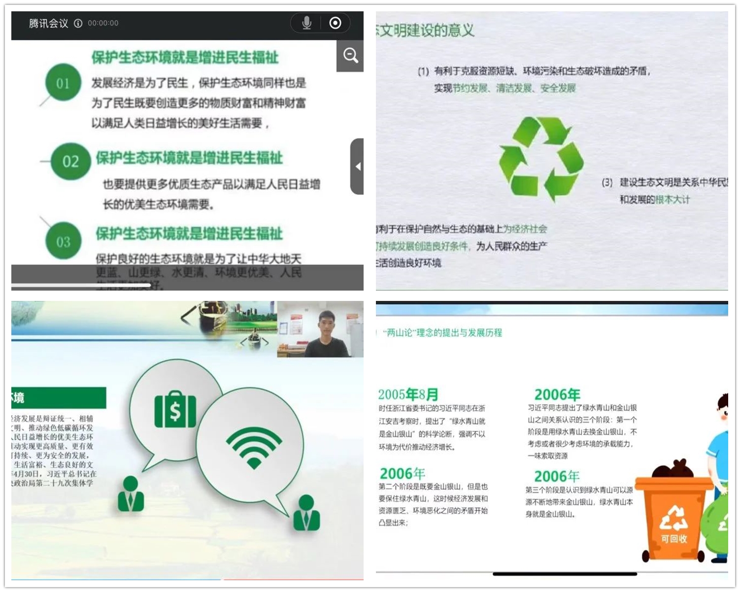 为深入学习贯彻党的二十大精神和习近平总书记在全国生态环境保护大会上的重要讲话精神,我院开展以“绿水青山就是金山银山”为主题的班会,分别从生态文明的内涵,新时代生态文明建设原则,改革开放以来我国生态文明的发展历程,建设资源节约型、环境友好型社会,应对重大环境问题的挑战等多方面向学生树立和践行绿水青山就是金山银山的理念。