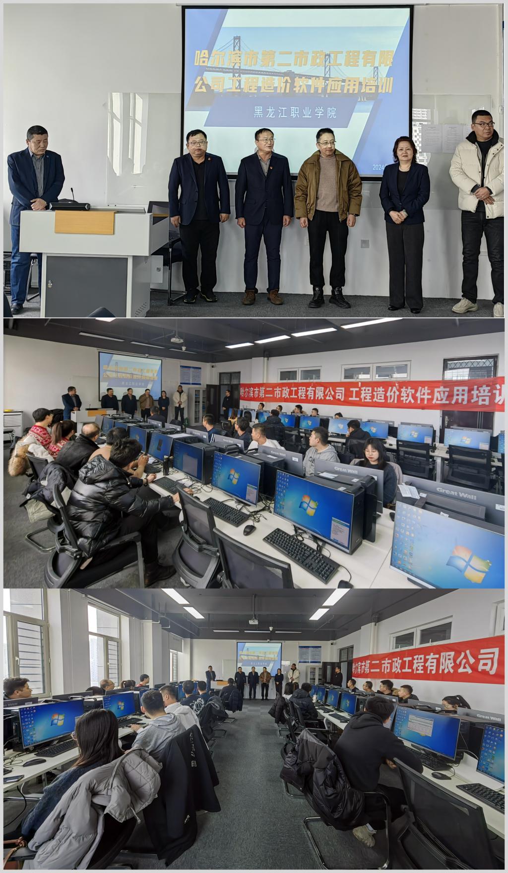 哈尔滨市第二市政工程有限公司为提高企业员工的工程造价业务技能水平,提升员工运用工程造价软件的生产能力,于近日在bevictor伟德官网建筑工程学院工程造价实训中心举办工程造价软件应用培训。哈尔滨市第二市政工程有限公司总工程师魏赢,建筑工程学院党总支书记范海波,副院长张皓,党总支副书记孙若鹏,教学副院长英鹏程,参加此次培训活动。
