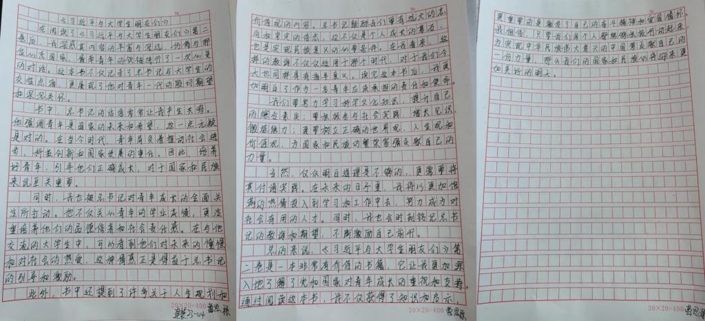 通过表面的东西看背后的机遇,找到解决问题的办法,要实实在在写调研报告。这是在《习近平与大学生朋友们》这本书中令我最印象深刻的一句话。作为一名大学生,我会牢记习近平总书记对青年人的嘱托,努力成为栋梁之才。