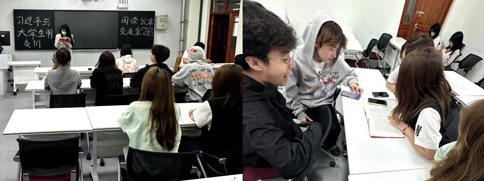 向阳盛开,向上生长。参加读书会的同学们围绕《习近平与大学生朋友们》第二卷,以小组为单位开展阅读学习交流。各班同学分别朗诵一段最有感触和启发的故事,并结合自己的经历分享学习感悟。同学们纷纷表示,通过学习交流,更加深刻领悟“两个确立”的决定性意义,坚决做到“两个维护”,对青年责任有了更为深刻的认识,更加明确了自己的成长定位,将自觉以中国式现代化的宏伟蓝图为目标,以真才实学服务人民、奉献祖国。